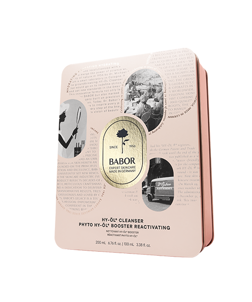Das BABOR Dreamteam: Die revolutionäre, mehrfach prämierte und verwöhnende 2-Phasen Tiefenreinigung mit HY-ÖL CLEANSER und dem Phyto HY-ÖL®. Die BABOR CLEANSING-Ikonen HY-ÖL und Phytoactive Booster als Set im limitierten 70 Jahre Jubiläums Design.
